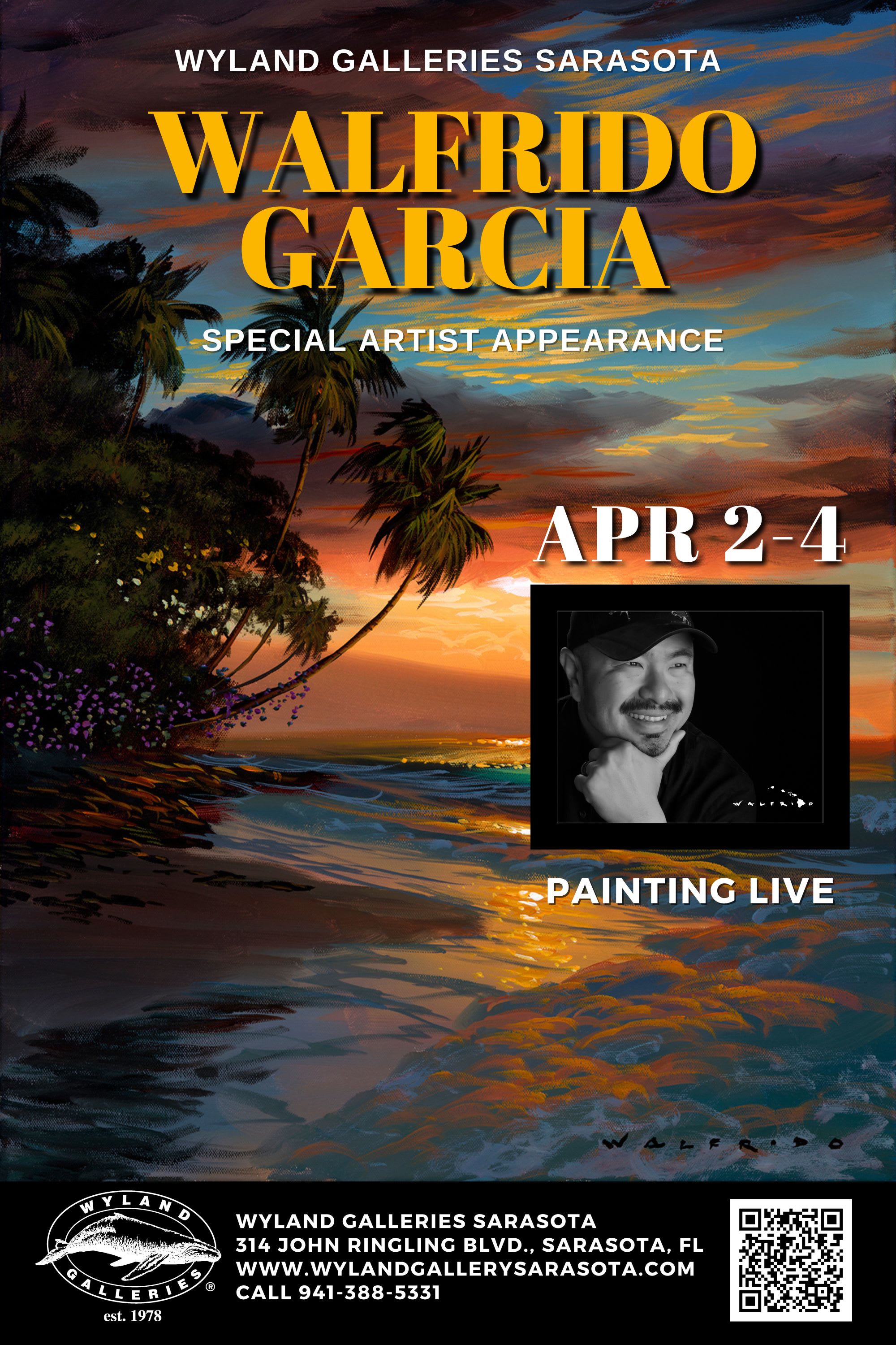 Special appearance by Walfrido Garcia, one of Hawaii's top selling artists. View his live painting at Wyland Gallery Sarasota, and view the artist's work at https://www.wylandgalleriesofthefloridakeys.com/gallery-artists/walfrido-garcia/Images